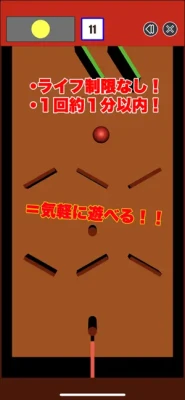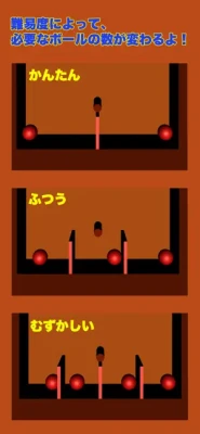 全てのゲートにボールが収まるように狙って落とすだけのシンプルゲーム。