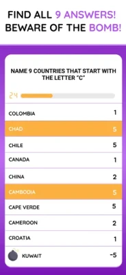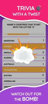 • A Quiz Game with a twist! Beware of the bomb answer, you could lose points!