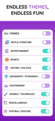 Available in 3 languages with QUIZ questions in English, French, and Spanish! This quiz game goes wherever you do to test your general knowledge and can turn any moment into an epic multiplayer Trivia showdown! Get ready for fun and unexpected Trivia questions that will put your knowledge to the test!