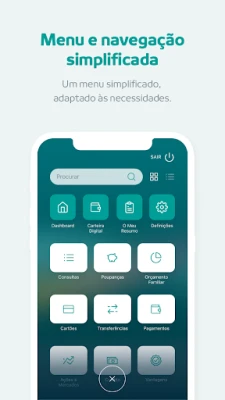 Ecrã inicial com o resumo das principais opções; saldos e movimentos das suas Contas; a sua Posição Integrada; os cartões de crédito associados e acesso rápido à opção de carregamentos para que acompanhe a atividade das suas Contas de forma simplificada.