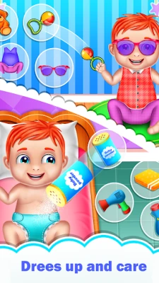Here newborn care activities in 7 lovely scenes, like a funny bathing, Caring, Doctor treatment, trendy dressing, tasty food, beauty joyful toy, cleaning the room. newborn want you at the same time, so satisfy their wishes step by step!