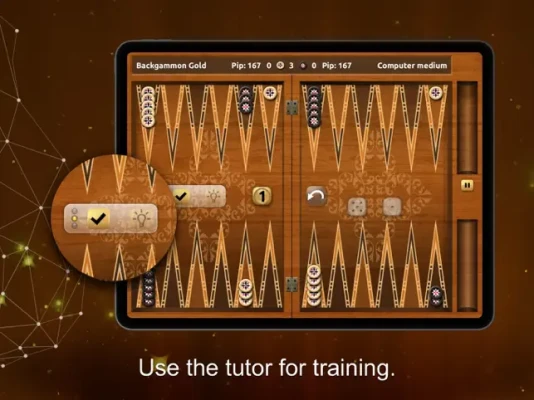 Challenge your friends to a classic Backgammon game in local two-player mode or play against the strongest computer opponent from BGBlitz. It is also suitable for beginners – the tutor shows you the best moves.