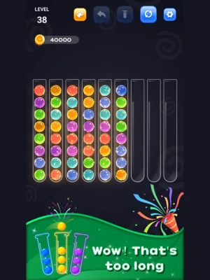 This ball sort game is easy to grasp but challenging to master. Just tap to move colored balls from one tube to