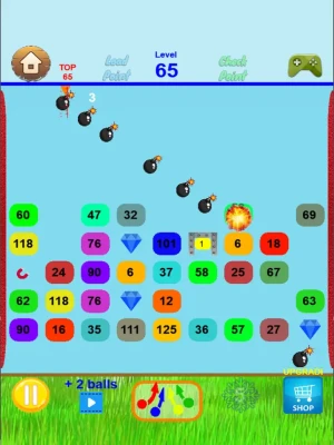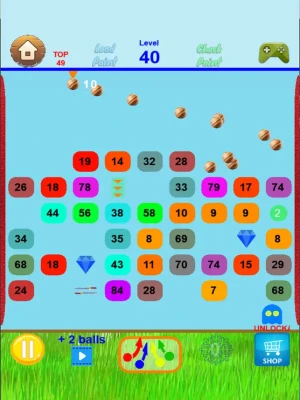 The bricks become more resistants with times and to slow down their progression you can upgrade balls with permanent super-powers using diamonds collected in the game.