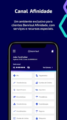 • Soluções Afinidade: Conheça soluções e oportunidades aderentes e/ou exclusivas aos clientes Banrisul Afinidade, além de conversar diretamente com seu Gerente de Contas.