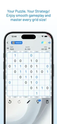 Binaris 1001 contains 3712 puzzles in various sizes (4x4, 6x6, 8x8, 10x10, 12x12 and 14x14) and different levels of game-play (easy, normal, hard and expert).