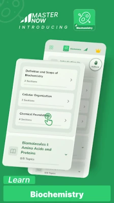 • Structured Content: Learn Biochemistry step-by-step, from basic principles to advanced concepts.