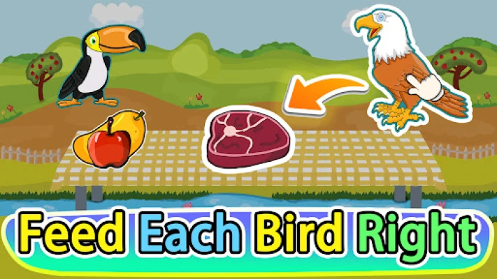 🍽️ Feed the Flock: Discover and match the favorite food of each bird.
