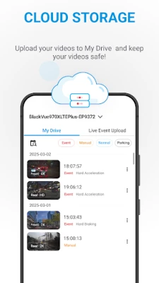 Taking advantage of a mobile or car-embedded Internet connection and a BlackVue dashcam, BlackVue Cloud connects you to your car through the Cloud. Using the BlackVue App on your smartphone or tablet, you see in real time where your car is located and what is happening around it.