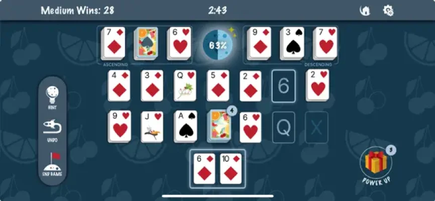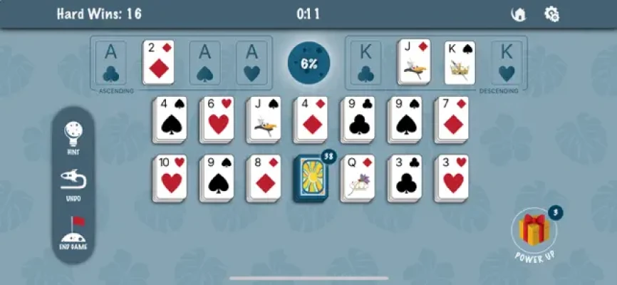 Power ups may be purchased inside the game, and are eligible for use in Easy, Medium, and Hard levels. Power up types are generated at random per the terms of the disclosure found here: https://kllandinc.com/blue-moon-solitaire-disclosure/