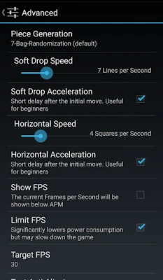 7-Bag-Randomization: Generates randomly permutated sequences of all 7 pieces. This means, that the player can never encounter 3 identical pieces in a row. Plain Random: The next piece will be independently generated at random.