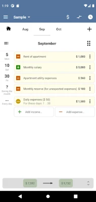 Write down your current assets, expected income and expenses for every month or day and get an accurate estimation of your balance in the future.
