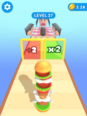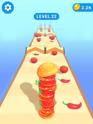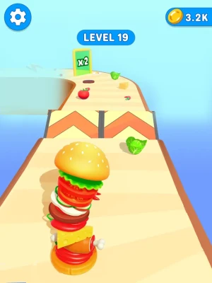 Swipe your hand left and right to grab tasty ingredients as you dash along the track. Pass through gates to grow your burger — but stay sharp! Obstacles are out to smash your stack to pieces.