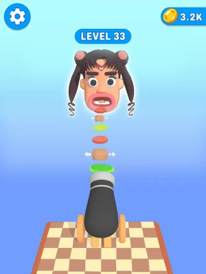Reach the finish line, load your burger tower into a giant cannon, and aim for the ultimate face smash!