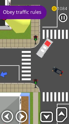 Pass the intersections on a green light and avoid collisions to boost your game progress.