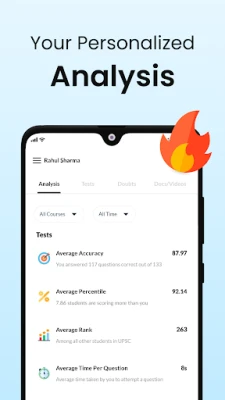 App learns about you while you learn from the app & tracks study pattern to give content/tests as per your need