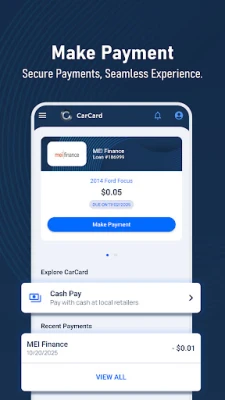 • Make on demand payments • Schedule automatic payments • View account activity • Complementary access to thousands of discounts and coupons CarCard is for participating auto lenders and their customers; registration required.