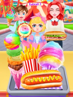 - Cotton Candy - Ice Cream Cone - Hot Dog - French Fries - Frozen Ice Cream Come on. Let's finish all the levels.