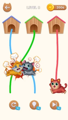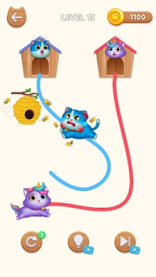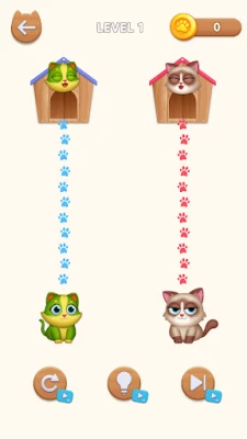 😍Playing the game Cat Rush - Draw to Home is extremely easy, you need to find a way to help the pets return home. Draw a line for the dogs and kittens to find their owners. In this jigsaw puzzle, connect the house and the pet by drawing lines, and bigger animals will rush there. There are some challenges and you have to overcome them to get your pet safely.
