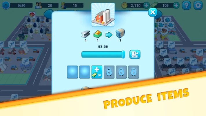 Your megapolis is divided into several zones: Trips, Public, Production and City Services Zone. Each is divided into several areas and performs its specific functions. Customize your pocket city in this city builder.