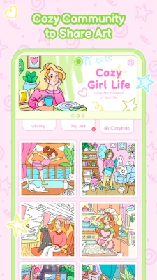Post your finished drawings in CozyHub, get inspired by others’ cozy art, and be part of a kind, cute community. Share your favorite aesthetic, your color palette, or just your mood — CozyHub is built around happy coloring, digital warmth, and gentle support.