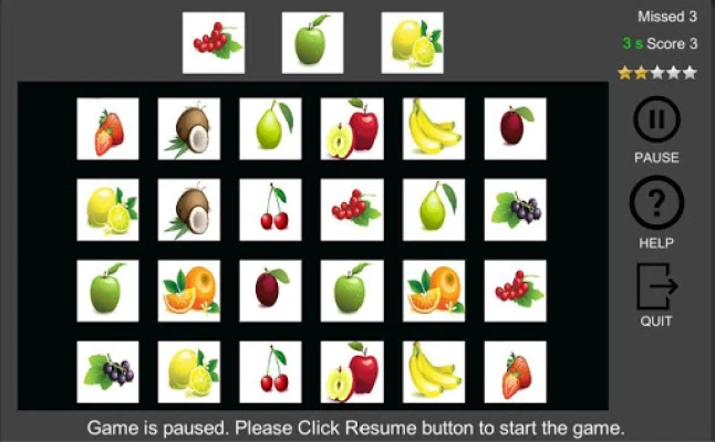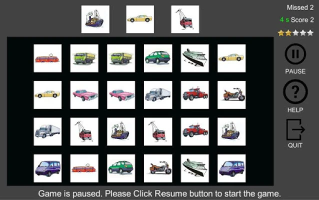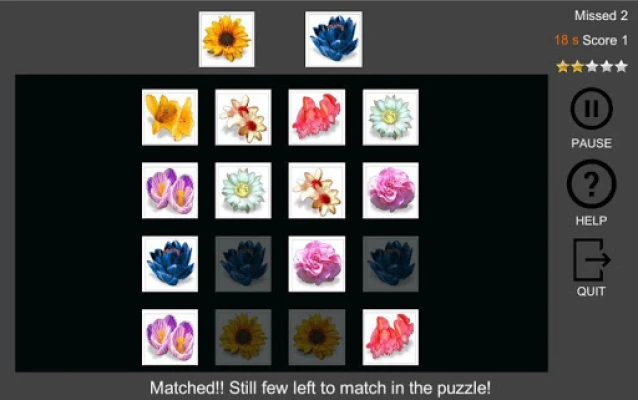 Each level will have different time limit (15, 30, 45secs), different mistakes limit (1, 2, 3) and number of pictures to match( 1, 2, 3)