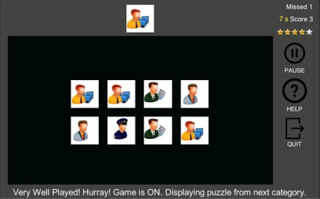 Player will have to quickly match them within the set time limit and with minimal mistakes. The puzzle becomes increasing difficult for each section as the player progresses successfully.
