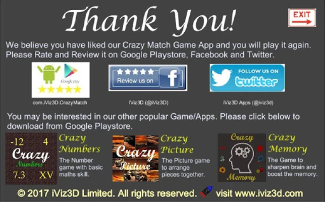 For all game and puzzle lovers who has smart eyes that can match an image from a set of images they will just love it.