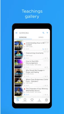 • LIVE STREAMING: This feature puts you “right in the sanctuary,” whether you’re home in your pajamas or walking on the beach. Set a reminder and hear the sermon in real time.
