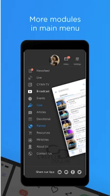 • EVENTS: Remain involved and in touch. Stay up-to-date on ministry happenings. Add events to your calendar, set reminders, get directions, and share with friends in an instant!