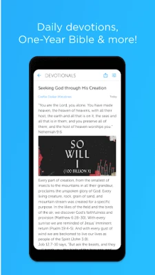 • DAILY DEVOTIONALS: Receive practical advice for applying the Word of God to your life, every day.