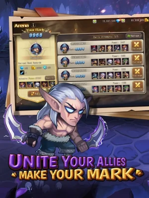 - Collect and Strengthen Heroes: Discover and recruit a diverse array of heroes, each boasting unique abilities and personalities. Build your legendary team and rise to greatness! - Join Guilds & Conquer the World: Team up with players from around the globe, form guilds, and leave your mark by climbing the leaderboards and challenging rivals in thrilling battles. - Team Up for Epic Guild Raids: Face formidable Bosses alongside your allies to earn massive rewards and exclusive gear that will enhance your heroes’ power. - Endless Rewards & Hero Summons: Enjoy generous rewards, including frequent hero summons, giving you the chance to bolster your roster and devise new strategies.