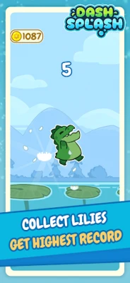 Hop, Decorate, and Relax in Dash Splash – a charming one-tap arcade game where adorable animals jump across lily pads, collect rewards, and build their own paradise island!