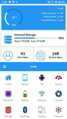 This application allows you to give your SmartPhone detailed specification which includes all the possible hardware configurations and other required details.