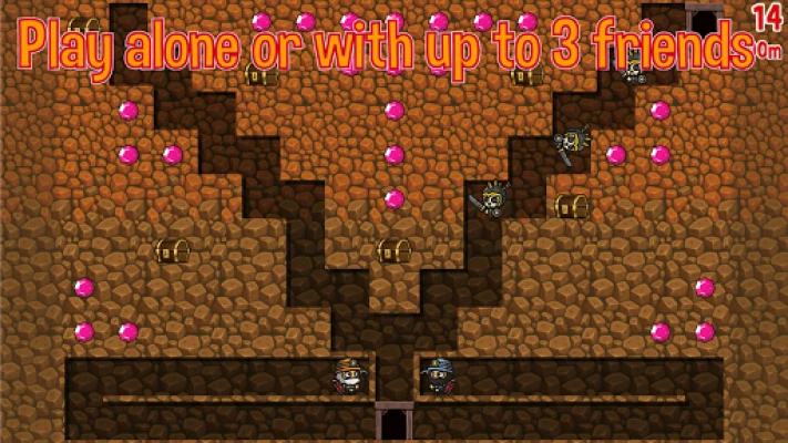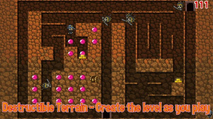 * Destructible terrain: Create the level as you play * Play with friends - up to 3 players * Dynamite - to defuse deadly debacles * How deep can you dig?