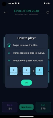 Evolution 2048 is a super simple and addictive logic game inspired by the classic 2048. Merge the same numbers, score points, and unlock higher stages of evolution!