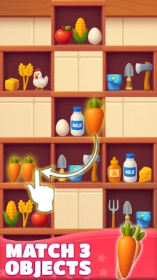 Experience a relaxing and colorful goods puzzle where you do item sorting like flowers, tools, and birds into perfect groups.