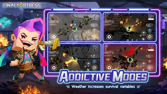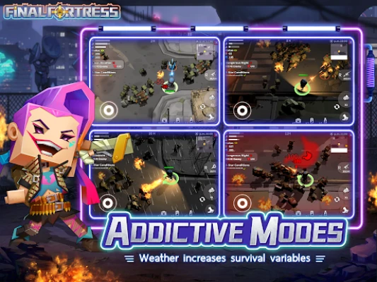 Experience the intensity of final fortress through multiple mission modes and immersive realistic atmosphere. Varied weather, day/night dungeon mode, time-limited mode, and intense survival mode offer countless fun battles.