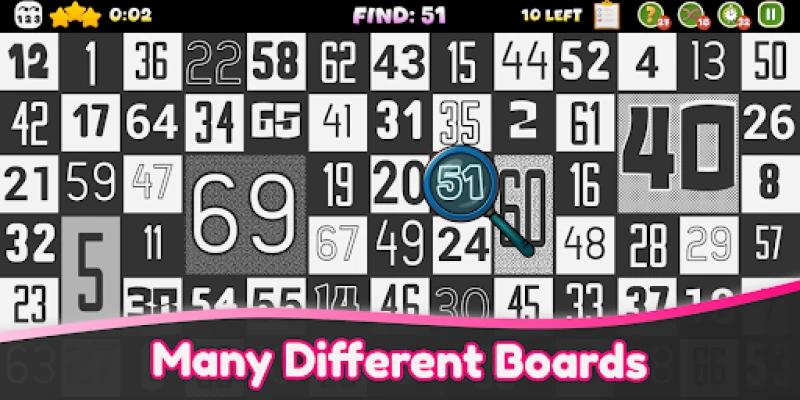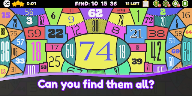 👆 Scan the board carefully, tap each required number, and find them all to complete the level.