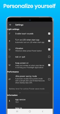 Brightest and Safest Flashlight with SOS feature. You can send SOS signal in an emergency cases with click of a button. SOS signal also can be used to to allow others to find you easily.