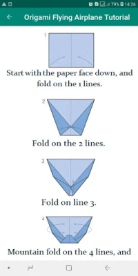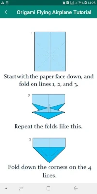 Origami Paper Flying Airplane instructions is a application that illustrates how to make flying Paper Airplanes step by step easy for beginner. Some are easy to bulid, some not, but all are fun to fold and fly.