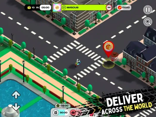 Follow the GPS arrow to reach your delivery location swiftly. Pay special attention to the arrow’s color, which turns red when time is running out! Time management is crucial — deliver those orders on time to stay ahead in the race!