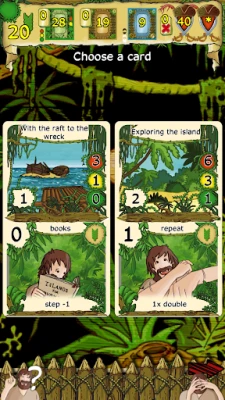 In this game, Robinson is represented as a card stack of different behaviors. You are forced to improve this card stack, so you can collect the cards at the end of the game to give Robinson the best chance to win against the tough pirates!