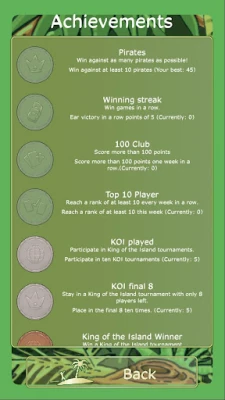 In this tournament up to 1024 players are fighting to become the true ruler of the island! This player can then call itself "King of the Island" until the next winner is crowned in 2 weeks...