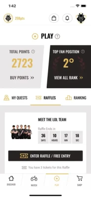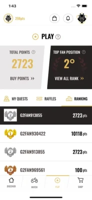 Express your fandom in the G2 App shop. Use points to order your favorite G2 Esports products. Top fans can unlock exclusive limited edition merch.