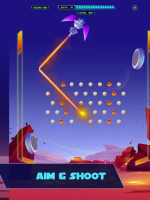 To play this spaceship blast game, aim and shoot from your spaceship with precision to target the fiery balls. Use strategic angles to make the perfect shot and break multiple balls at once. Your shots will ricochet and bounce off other fiery bodies, just like in a cosmic pinball game, creating a thrilling chain reaction. Eliminate all enemy fireballs to clear the level, save the planet, and advance to the next exciting challenge!