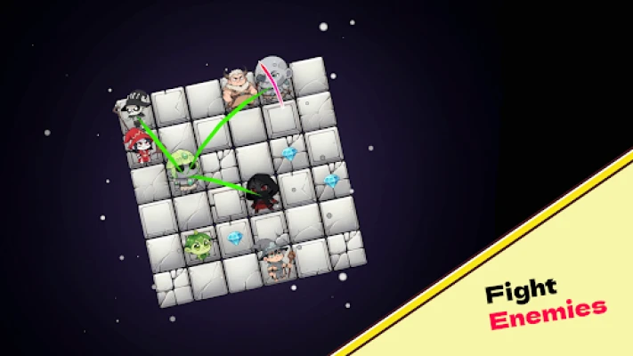 Levels consist of fields of different sizes and shapes, where various events occur each turn: enemy appearances or movements, activation of traps and obstacles, or assistance from companions.
