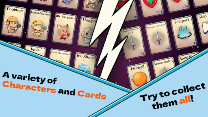 The game features various characters, each with unique attributes and special abilities: different types of attacks, unique cards, and useful passive effects.