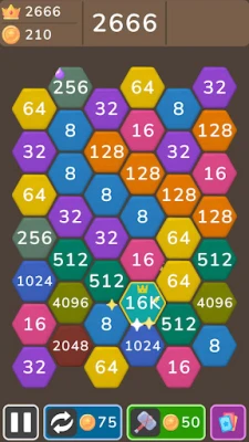 At its core, Hexa Merge 2048 revolutionizes the classic puzzle formula with hexagonal tiles. Swipe to merge matching numbers across the honeycomb grid, creating larger values as you work toward the coveted 2048 tile—or push your limits even further! The hexagonal layout opens up new strategic possibilities, requiring you to think beyond traditional four-way movement. Every swipe demands careful planning as you navigate the unique geometry of this engaging brain teaser.