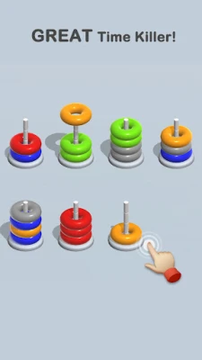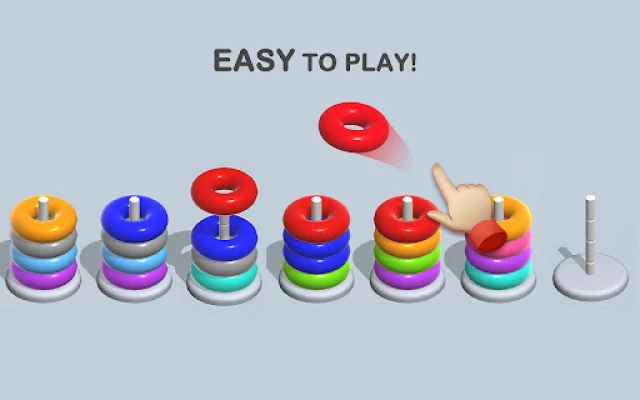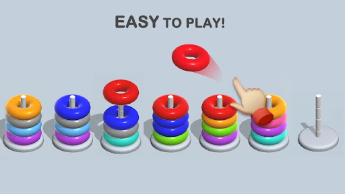 How to play -Tap any stack to move a hoop -Place the hoop on a stack that includes the same color ring at the top. -The same color on the top can put the same hoop -A stack can only hold four hoops. -Use free stacking props to help you pass the level. Why choose us: -Really free game! -Play Offline without WIFI -No move and time limit -Suitable for all ages Play this hoop sort game, Train your brain, and relax your brain!
